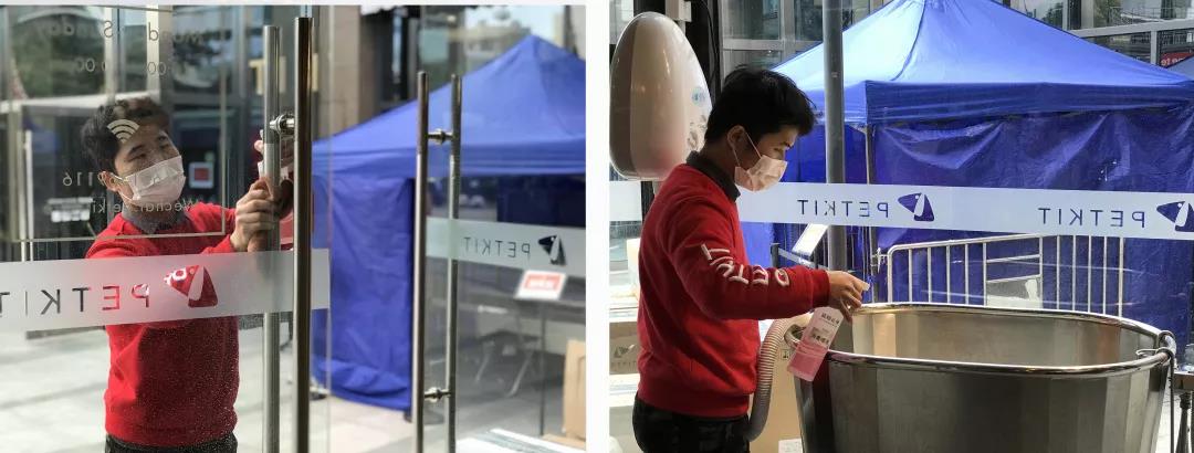 门店员工均佩戴一次性口罩,并在工作中定时洗手消毒。进出入的顾客也需佩戴口罩,相互保持适当距离,贴心的无接触服务每天都为你和爱宠的安全把关。